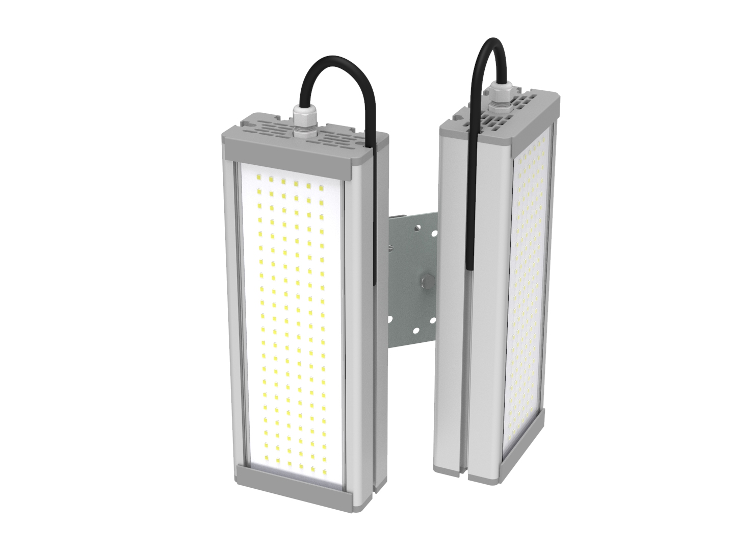 Объединенные светильники серии "Модуль". "Хвосты" питания не объединены в один. Сколько модулей, столько и "хвостов". Модули могут работать независимо друг от друга. Это позволяет включать их различными фазами, а также производить замену Модулей, без демонтажа светильника целиком.